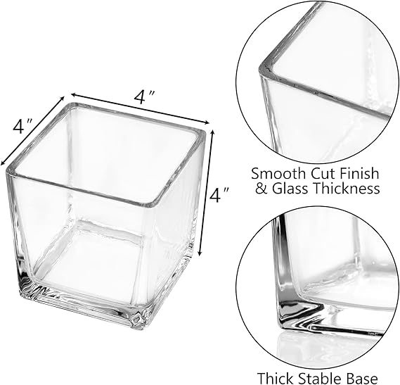 • Versatility Use – You can do almost anything with these see through vases! These square vases can be used as flower vase, plant terrarium, succulent pot, votive candles holder, floating candle holder, small fish tank, or even a simple storage box for pens and makeup brushes.